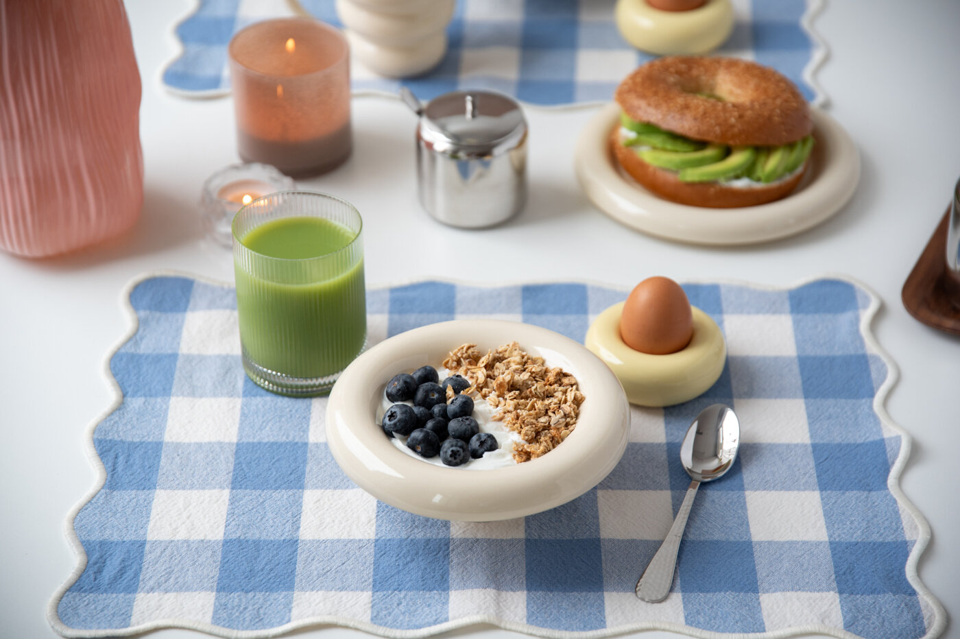 Set the table for a good breakfast and let it set the tone for the day. Light blue tones, checks, and simple details create a spring-ready and inviting table setting.